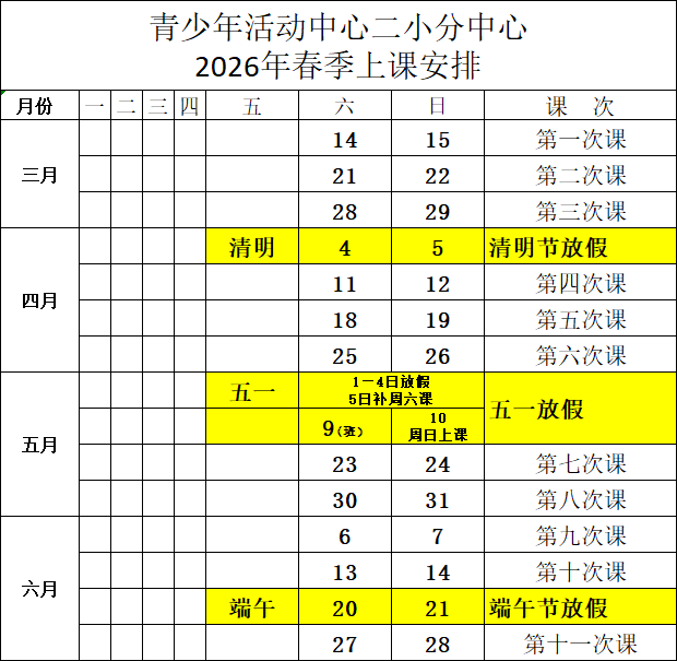 青少年活动中心2026年春季