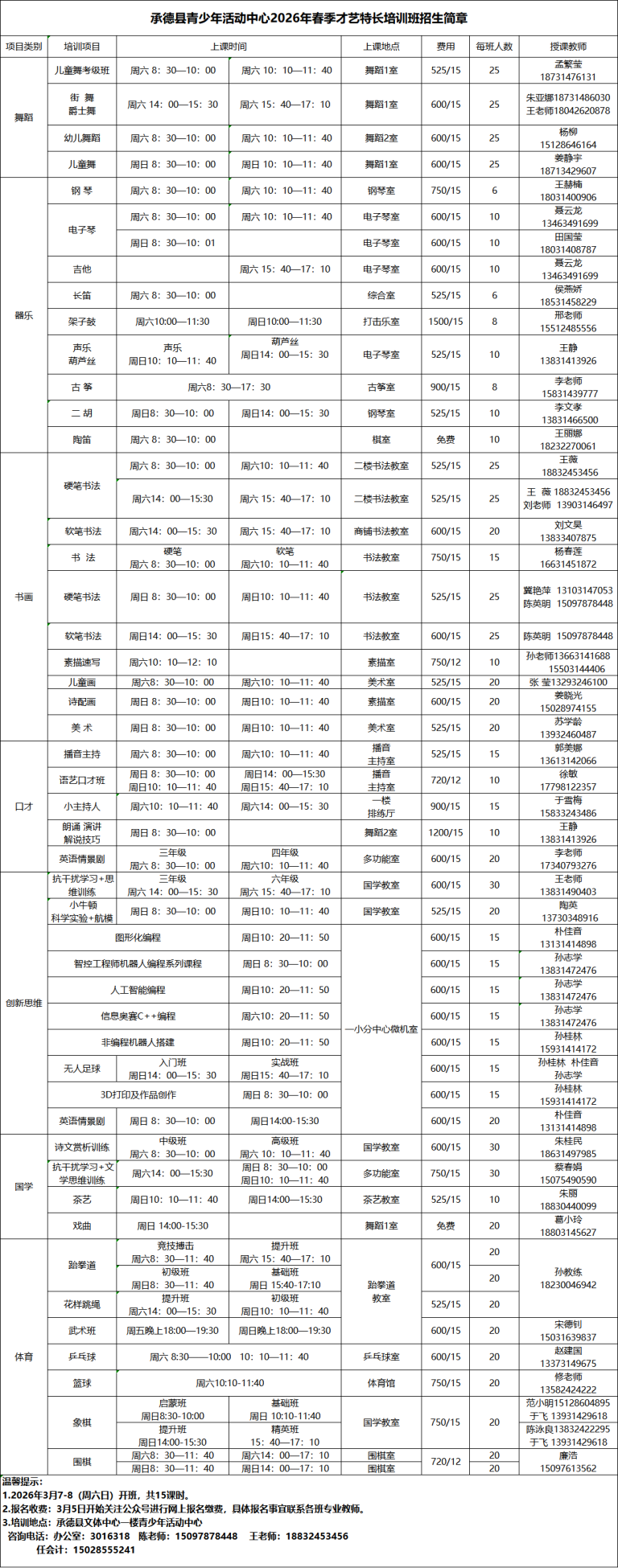 3.培训地点:承德县文体中心一楼青少年活动中心
